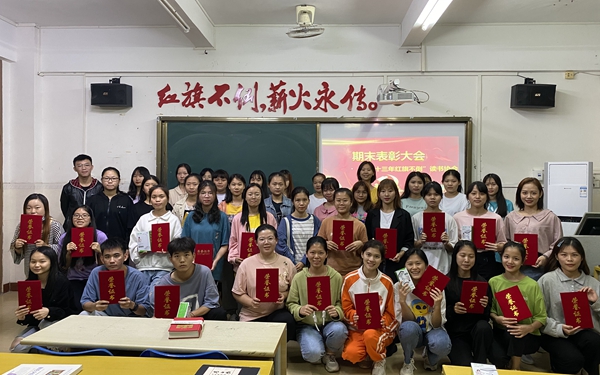 会议议程第三项,关工委韩祝筹主任和思政部概论教研室主任兼读书协会指导教师赵佳钰为获奖会员颁发奖状和奖品。韩祝畴主任希望会员们不忘初心,继承琼崖革命精神。