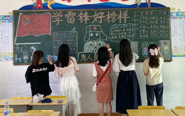 活动前期先招募教育专业学生,活动期间学生们进入小学校园开展雷锋精神宣传助教活动,活动通过设计雷锋精神宣传黑板报的形式,鼓励孩子们在日常生活中多做好事、实事,为需要帮助的人伸出援助之手,以实际行动弘扬雷锋精神。