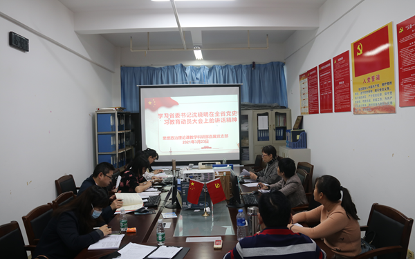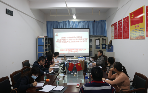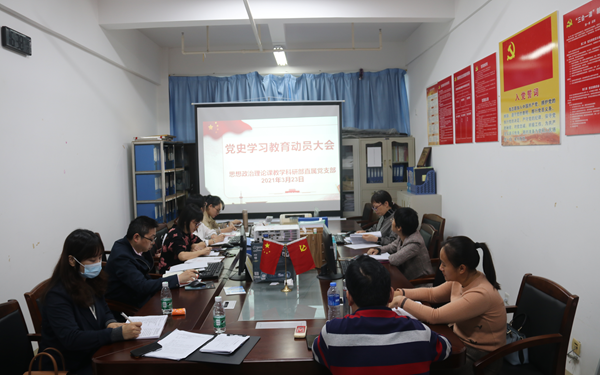 2021年是中国共产党成立100周年,为从党的百年伟大奋斗历程中汲取继续前进的智慧和力量,根据省委和学院党委关于党史学习教育的统一部署,思政部直属党支部3月召开全体党员大会,思政部召开教研室集体备课会,分别围绕党史学习教育开展动员大会和专题学习,并结合部门实际制定学习教育方案,思政部不仅将党史学习教育融入思政课课堂,更依托“二十三年红旗不倒”读书协会和时事协会学生社团制定党史学习教育系列方案,并指导学生开展系列活动,课内课外相结合,扩大学生党史学习教育的参与面和受益面。