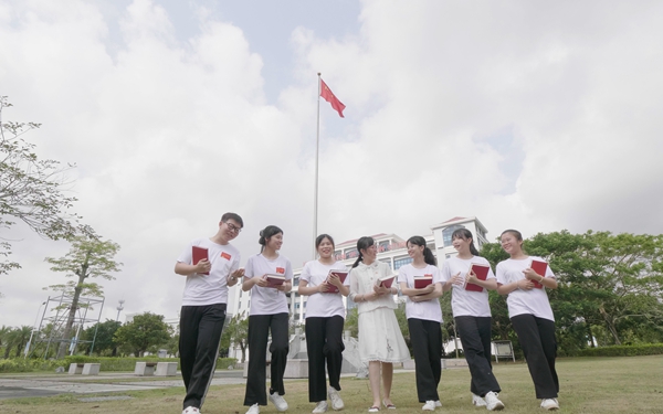 我院《学子如斯,读红不辍-以党建+“关建”立德树人》案例获得2020年海南省教育系统基层党组织党建工作创新案例,为落实该项目,2021年4月7日,思政部“二十三年红旗不倒”读书协会分别在二号教学楼2203教室和校园内多个景点进行拍摄宣传视频活动,学院党委副书记黄丽芹、思政部主任周清云、关工委主任韩祝畴、关工委副主任莫运深、关工委陈献积老师分别参加拍摄活动,协会指导教师赵佳钰、张敏老师组织会员们进行拍摄。