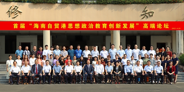 2021年4月25日,首届海南自贸港思想政治教育创新发展高端论坛在海南政法职业学院举行,来自海南大学、海南医学院、琼台师范学院等多所高校的百余位思想政治教育工作者参加论坛。我院思政部主任周清云、教研室主任陈若团和周群林、思政课教师周丽萍参加本次会议。