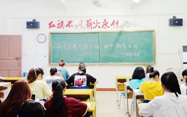 每周三晚上,我院二号教学楼2203教室时常传出朗朗读书声,思政教学部组织“二十三年红旗不倒”读书协会学生在这里举办“诵读红色经典、培育爱国情怀”主题活动。活动中,学生以《冯白驹和他的战友们》、《海南革命斗争史》、《中国共产党简史》等著作为读本,按照指导教师要求开展诵读,并做好读书笔记,写好读书体会,相互交流读后感。