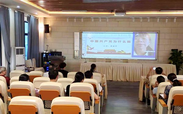 6月29日,学院党委委员、党委副书记黄丽芹以《中国共产党为什么能》为主题,在综合楼AE101报告厅通过视频连线的方式讲授党史学习教育专题党课。机关党总支部学生处党支部、西语系党总支部、思想政治理论课教学科研部直属党支部全体党员参加会议。