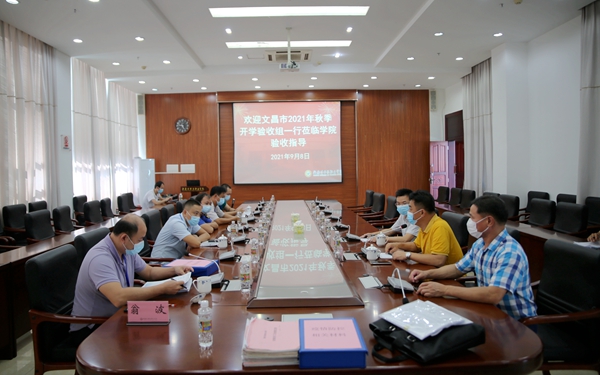 为确保我院秋季开学工作顺利进行。9月8日上午,文昌市2021年秋季开学验收组一行莅临我院指导验收学院秋季开学准备工作,学院党委委员,副院长梁松、学院相关部门负责人陪同检查。