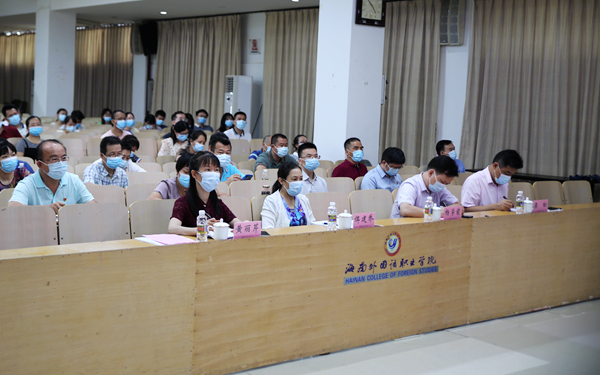 学院党委书记佴建乔,党委副书记、院长杨学前,党委副书记黄丽芹,党委委员、副院长梁松,以及全体中层干部、教职工党员和机关管理干部聆听报告会。党委副书记黄丽芹主持报告会。