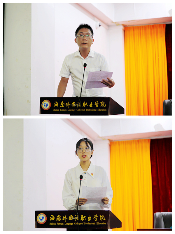 会上,入党积极分子、旅游系谢孟老师作表态发言,表示要时刻严格要求自己,努力学习党的理论,以实际行动争取早日加入中国共产党,为党的事业奋斗终身。党员代表、英语系张芸源同学表示,作为一名新党员,要以优秀党员的身份时刻严格要求自己,担当起党员先锋的模范作用。