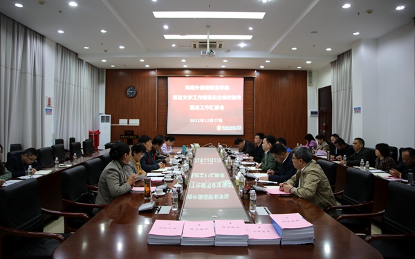 评估期间,验收工作组采取查阅资料、参观校园等多种形式,全面考察学院国家通用语言文字规范化达标建设情况。在评估验收反馈会上,验收工作组宣布了学院通过国家通用语言文字规范化达标校评估验收,对学院语言文字工作成果给予了充分肯定,认为学院注重传承弘扬中华优秀传统文化,有效将语言文字规范化融入校园文化建设。
