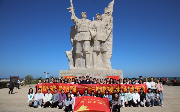 首先,由我院关工委韩祝畴主任讲述琼崖纵队“二十三年红旗不倒”的光辉历史。接着,协会指导教师赵佳钰宣读了“二十三年红旗不倒”读书协会社团章程并向各位新、老会员介绍了新一任学生干部人选。然后,赵佳钰老师深情地讲述了从1927年9月23日椰子寨战斗到1950年5月1日海南岛全岛解放这段“二十三年红旗不倒”的光辉历史,并介绍了临高角解放公园。最后,全体会员在陈献积老师的带领下唱响了红色歌曲《万泉河水清又清》,大家激情澎湃地唱出了渡海战役中红军与百姓的“军民一家亲”的深情厚意。歌曲毕,赵佳钰老师带领全体会员在这庄严而神圣的土地上一起喊出口号:“孤岛奋战,艰苦卓绝,‘二十三年红旗不倒’。賡续英雄血脉,传承红色基因,薪火永相传,红旗永不倒!”,让红色口号响彻琼崖大地。