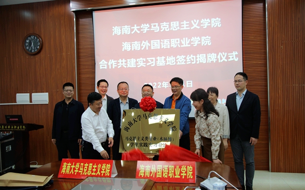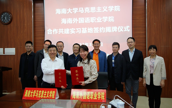最后,海南大学马克思主义学院张云阁院长和开云kaiyun登录入口黄丽芹副书记签约揭牌,双方代表合影留念。