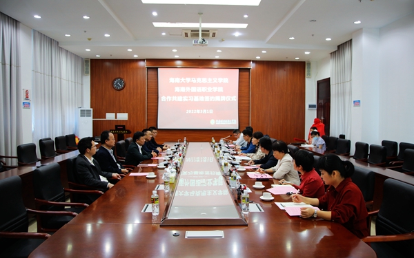2022年3月1日下午,海南大学马克思主义学院张云阁院长一行到开云kaiyun登录入口签约合作共建实习基地,学院党委书记佴建乔,党委副书记、院长杨学前,党委副书记黄丽芹热情接待了张云阁院长一行。