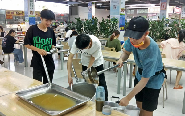 学院在文昌市卫健委和文昌市中医院的专业人员指导下,采购了防流感中药剂,由文昌市中医院医护人员亲自来校指导学院校医和食堂人员熬制中药汤,在熬制完成后将其免费发放给全体师生服用。
