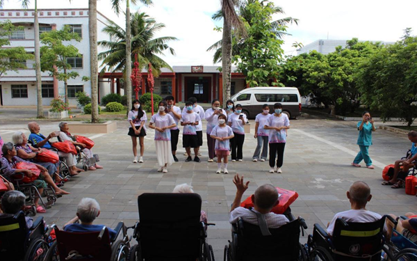 青春暖夕阳,志愿走进光荣院。为培养当代社会大学生的社会实践能力,弘扬中华民族敬老爱老的传统美德。2022年6月25日海外院思政部心灵协会组织开展“携手夕阳,与爱同行”主题活动。本次活动在刘丽丽和安哲萱两位协会指导教师带领下,全体会员到文昌市光荣院开展慰问活动。