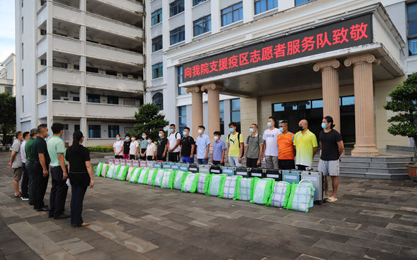 学院党委书记佴建乔殷切嘱托:一要以高度负责的工作态度和严谨扎实的工作作风做好志愿服务,始终牢记支援全省战“疫”工作的重要性,以“时时放不下心”的责任感为海南战胜疫情作出贡献,体现出海外院人的担当作为和良好形象;二要一切行动听指挥,在工作中要严格按照省委省政府要求,服从当地工作安排,遵守工作要求和纪律,尽心尽力做好各项工作;三要团结友爱,互帮互助,通力协作,齐心协力打赢抗击疫情这场大仗;四要认真严密做好自我防护,严格遵守防疫保护措施,确保自身安全,早日凯旋归来。