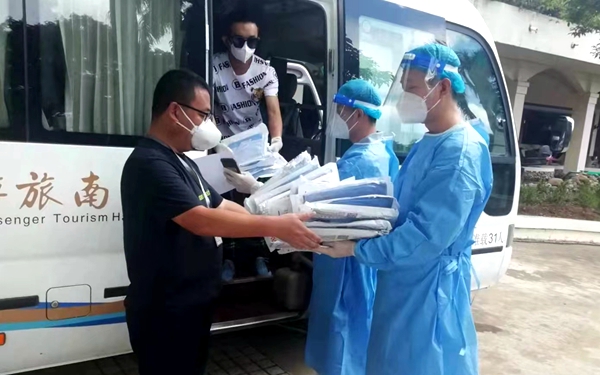 后勤处陈勇同志在支援三亚抗击疫情以来,按照工作要求认真做好滞留旅客转运车辆的跟车工作。他说:“作为一名海南人,我能为旅客们做的就是热情服务,希望能用我的微薄之力,让他们感受到海南人民的热情好客的一面!”