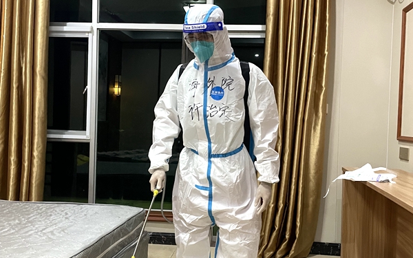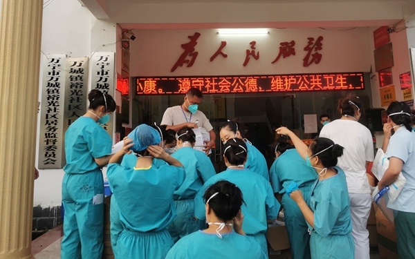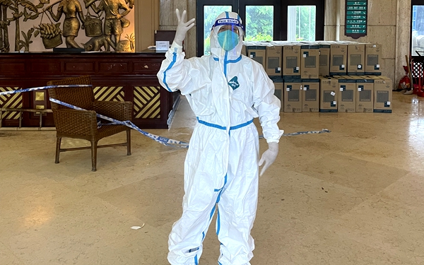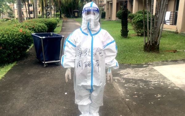 在万宁市的疫情防控工作中,我院的“大白”身披星辰戎装以待,冲锋在前不畏炎热,做着繁琐又机械的动作,每天要重复几百遍上千遍,纵然已经疲惫不堪却依旧全力以赴。隔着防护服和面罩甚至看不清他们的脸,但能感受到他们那份责任心。
