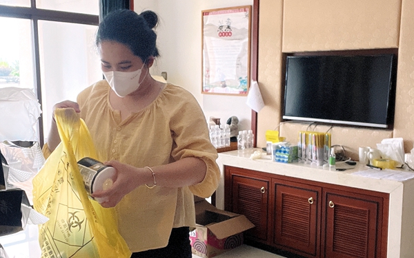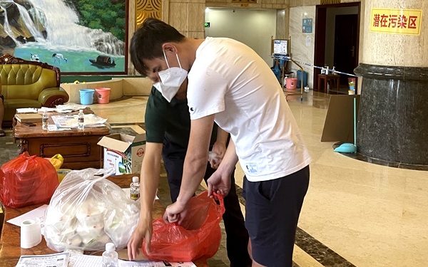 在万宁市城镇封闭、交通不便、人员隔离的情况下,我院的党员干部职工化身“店小二”,下沉一线,全身心投入社区、乡镇、酒店的后勤服务保障工作。他们有的帮忙运送疫情防控所需的医疗物资,有的帮忙分发核酸检测所需的防护用品,有的帮忙清点乡镇群众所需的生活物资,有的帮忙配送隔离酒店所需的一日三餐......在一场没有硝烟的战“疫”中,他们用汗水、用体力保障疫情防控工作。