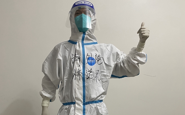 我院支援万宁志愿服务队顶着烈日流着汗,风里来雨里去,早出晚归,全力以赴,助力万宁“战疫”攻坚。万宁市当地的社区、乡镇工作人员和群众评价道:海外院党员志愿者,能吃苦,还能文,又能武,值得“点赞”!