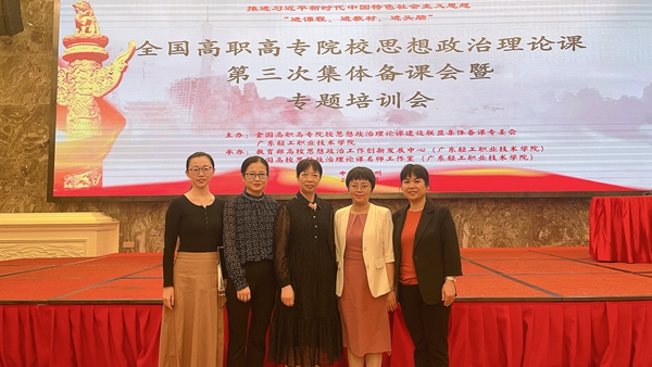 为扎实推进学习贯彻习近平新时代中国特色社会主义思想主题教育,学习贯彻党的二十大精神,切实做好党的二十大精神“三进”工作,马克思主义学院周清云院长带领思政课教研室主任陈若团、张敏、赵佳钰和马院办公室主任周丽萍,5月11日-14日赴广州参加全国高职高专院校思想政治理论课第三次集体备课会暨二十大精神“三进”工作专题培训。来自全国150所高职院校470余名思政课教师参加了培训。