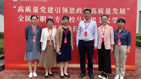 为扎实推进学习贯彻习近平新时代中国特色社会主义思想主题教育,马克思主义学院党总支书记邢益承、院长周清云带领思政课教研室主任陈若团、张敏、赵佳钰和马院办公室主任周丽萍,5月14日至15日到顺德职业技术学院参加以“高质量党建引领思政课高质量”为主题的全国高职高专院校马克思主义学院书记院长论坛。此次论坛有来自全国14个省、自治区、直辖市的高职院校马克思主义学院负责人和教师代表共100余人参加了活动。