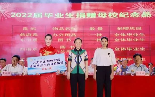 佴建乔代表学院接受2022届毕业生代表向母校赠送的毕业纪念品。纪念品饱含了2022届毕业生对母校的真挚祝福,同时也是对母校的庄严承诺。相信母校在一代代海外院人的共同努力下,明天一定会更加美好;相信2022届广大毕业生带着师长们的谆谆教诲和刻在骨子里的“海外院印记”,无论走到哪里,他们的明天一定会更加精彩非凡。