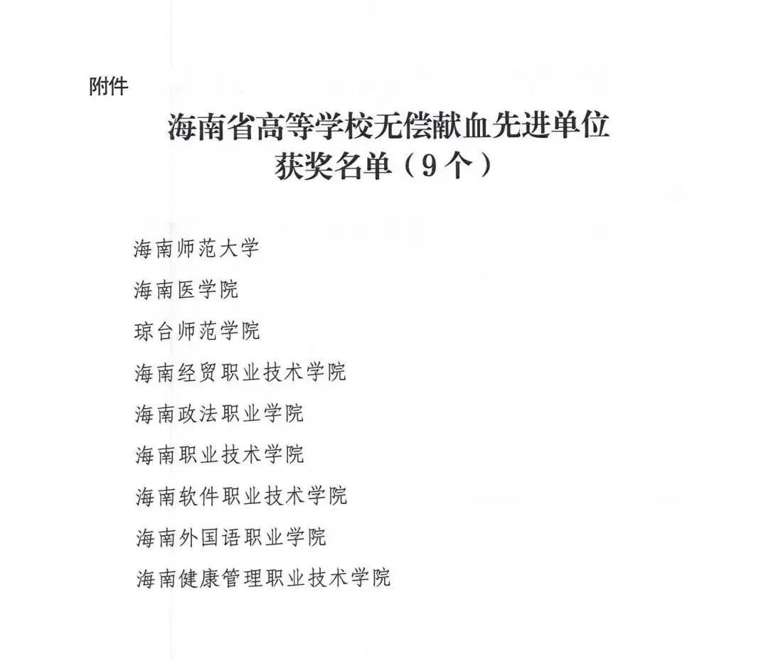 近日,海南省卫生健康委员会、海南省红十字会、海南省教育厅联合发文并公布受表彰2021年度省高等学校无偿献血先进单位和个人,开云官网荣获“全省无偿献血先进奖单位奖”。