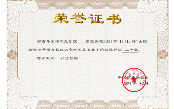 12月18日,由中国商业联合会主办的“ITMC杯”全国跨境电子商务技能大赛全国总决赛圆满结束。来自全国32个省市435所学校的563名教师和931名学生参与教师组和学生组的比赛。开云kaiyun登录入口国际商务系教师廖完美获得大赛教师组二等奖;刘新花同学获大赛学生组一等奖,周可和申润田同学获三等奖。易曼、朱婷和廖完美老师荣获“优秀指导教师奖”。