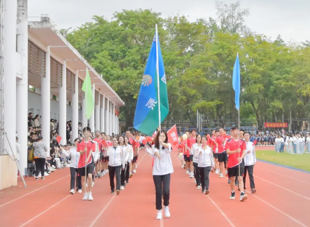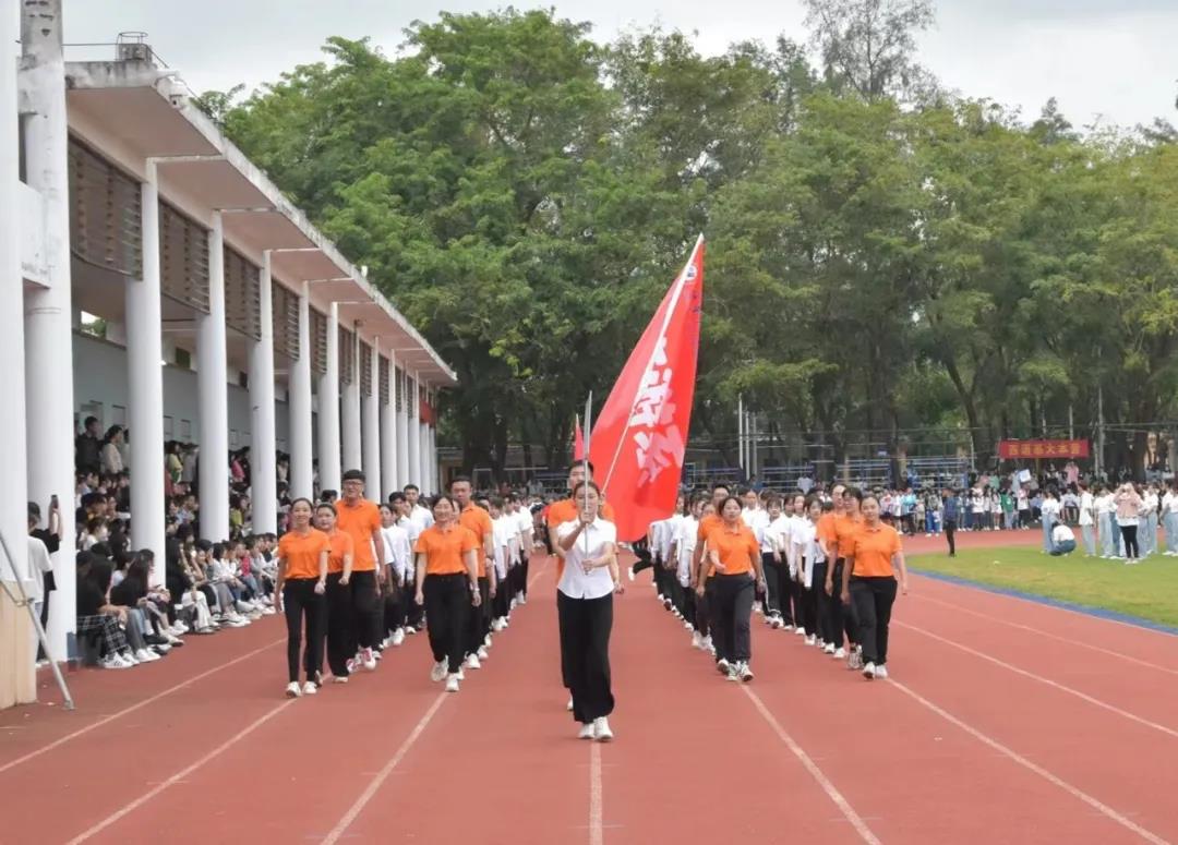 意气风发的教师们,精神抖擞的健儿们,激昂的音乐响起,他们高喊着口号,以饱满的热情走向主席台,充分展现着海外院师生奋发向上的良好精神风貌。