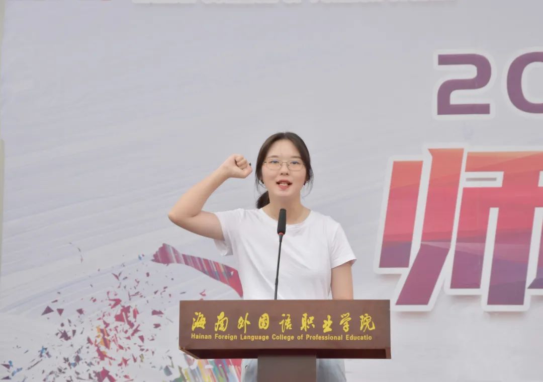 伴随着欢快的旋律,踩着青春洋溢的节拍,“后浪”们踏浪而来。“我们都是追梦人”是人文艺术系青年学子对新时代号角的积极响应;东语系代表队用灿烂的笑容释放澎湃热情,“你笑起来真好看”是对逐梦的坚定;“大家一起喜羊羊”凝聚着西语系学生们对本次盛会热情而美好的祝愿;“加油,amigo”是旅游系同学们对每一位追梦人在逐梦道路上的相互鼓励;“YES,OK““YES”那是英语系和国际商务系学子们对党和国家的期望做出阳光自信、铿锵有力的回答。