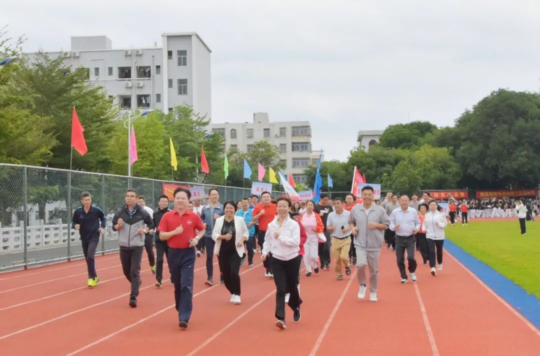 在全体领导带头领跑下,师生们热情跟随,这一场朝气蓬勃的运动会正式启航。