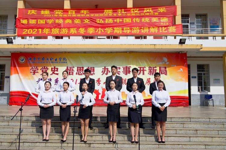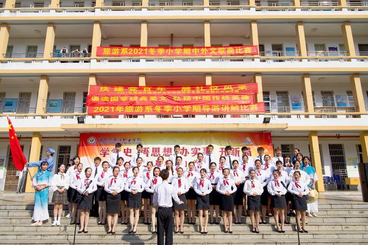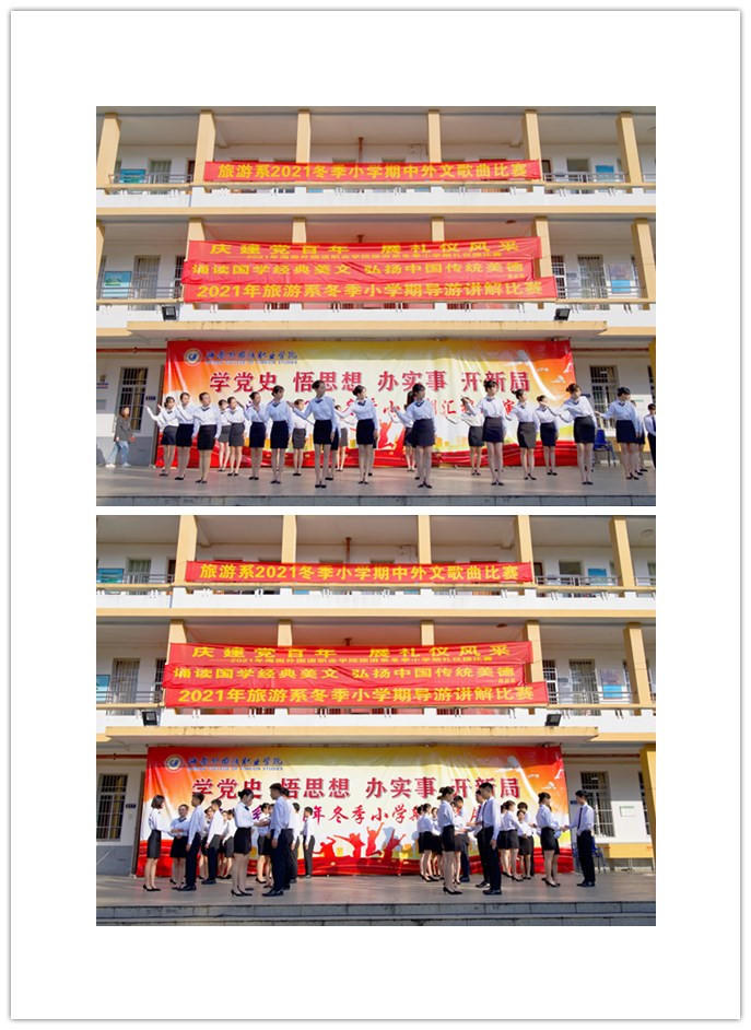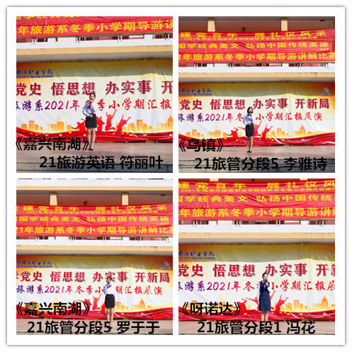 为加强学生对专业知识的理解,锻炼学生的口才及表达能力,展现学生的个人风采,也为进一步培养适应旅游业发展需要的优秀旅游人才,我系特在2021冬季小学期举办了导游讲解大赛。汇演现场,四位同学都是精神抖擞、意气风发、斗志昂扬走上台;她们服装整齐、一颦一笑、一招一势都入木三分;导游词主题鲜明、积极向上。这背后一定渗透着选手和指导老师心血才得以实现。