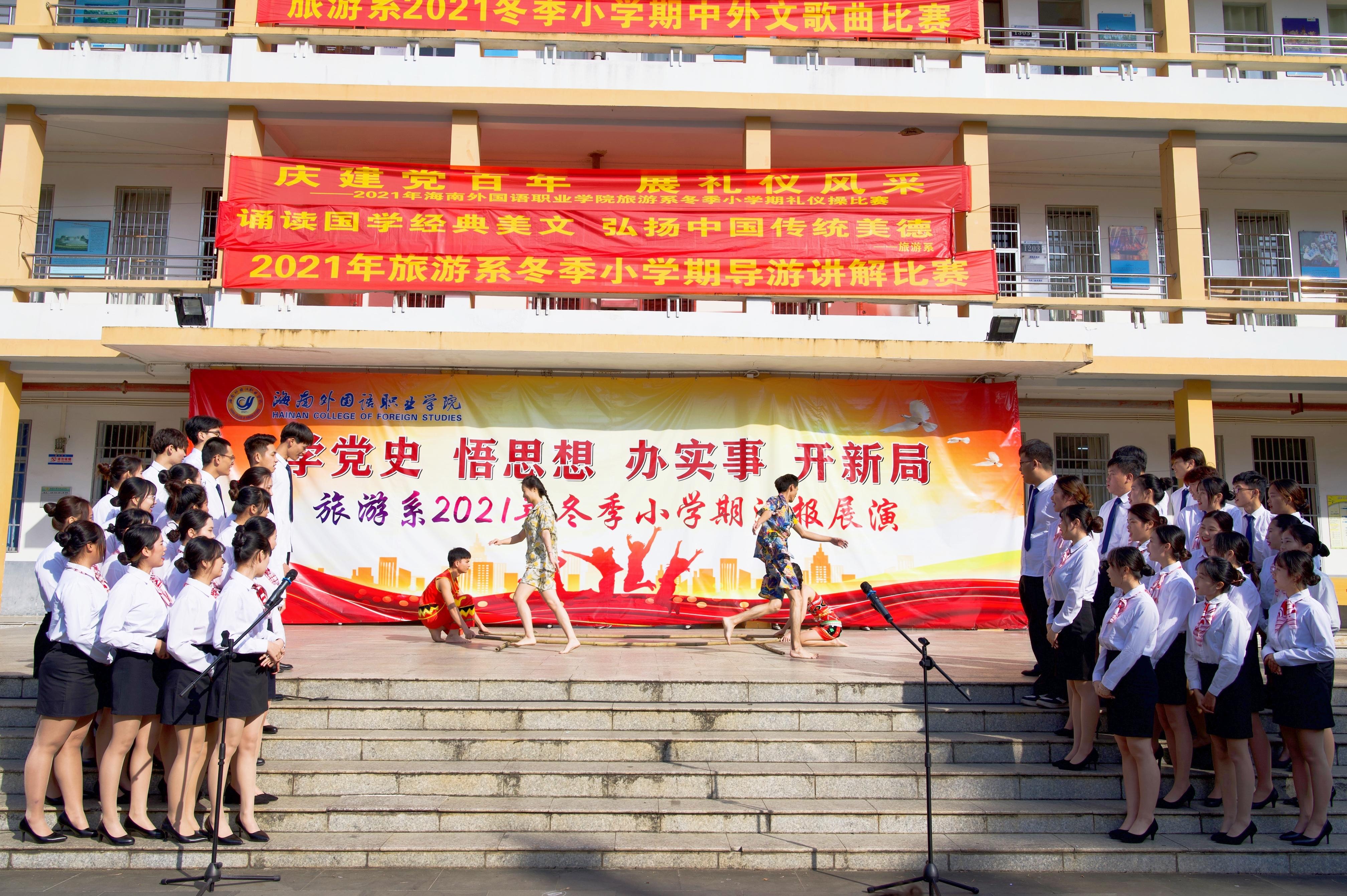11月26日上午,2021年开云kaiyun登录入口旅游系冬季小学期汇演在一号教学楼如期举行。出席本次汇演的有旅游系党总支林明霞书记、学院督导委林勤副主任、李朝霞老师以及旅游系全体教师和非毕业班的同学们。