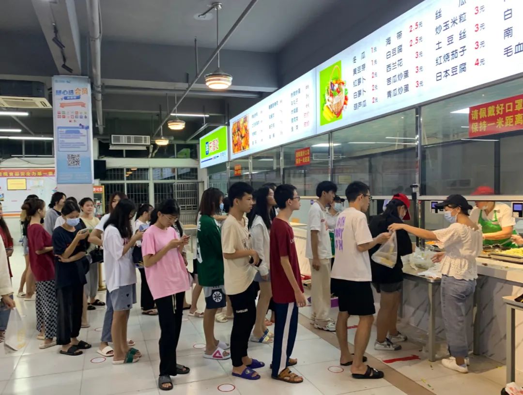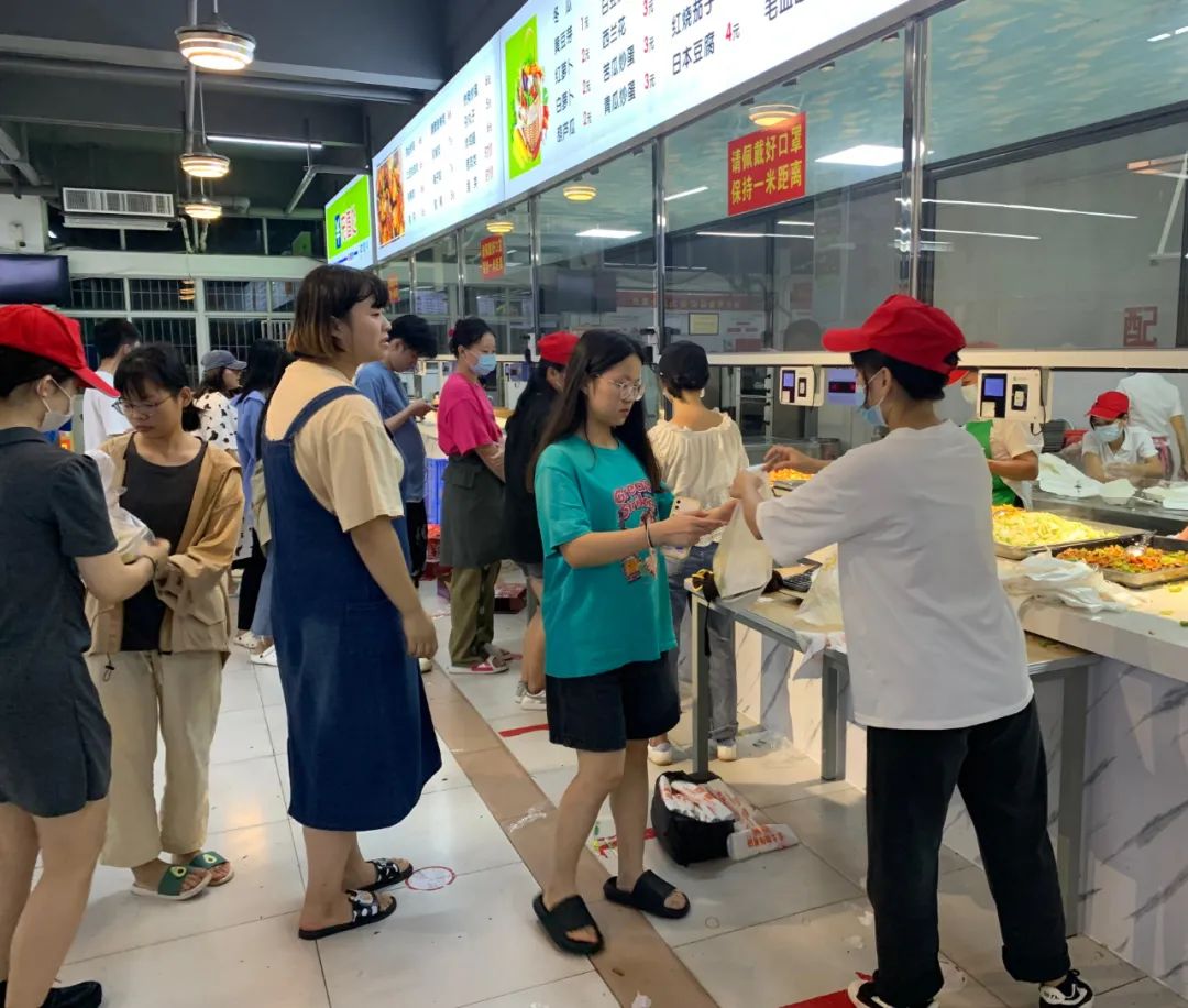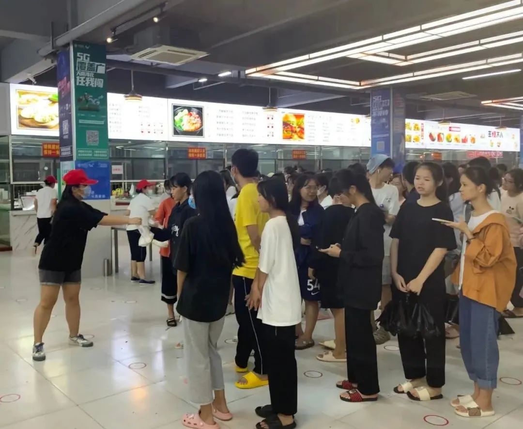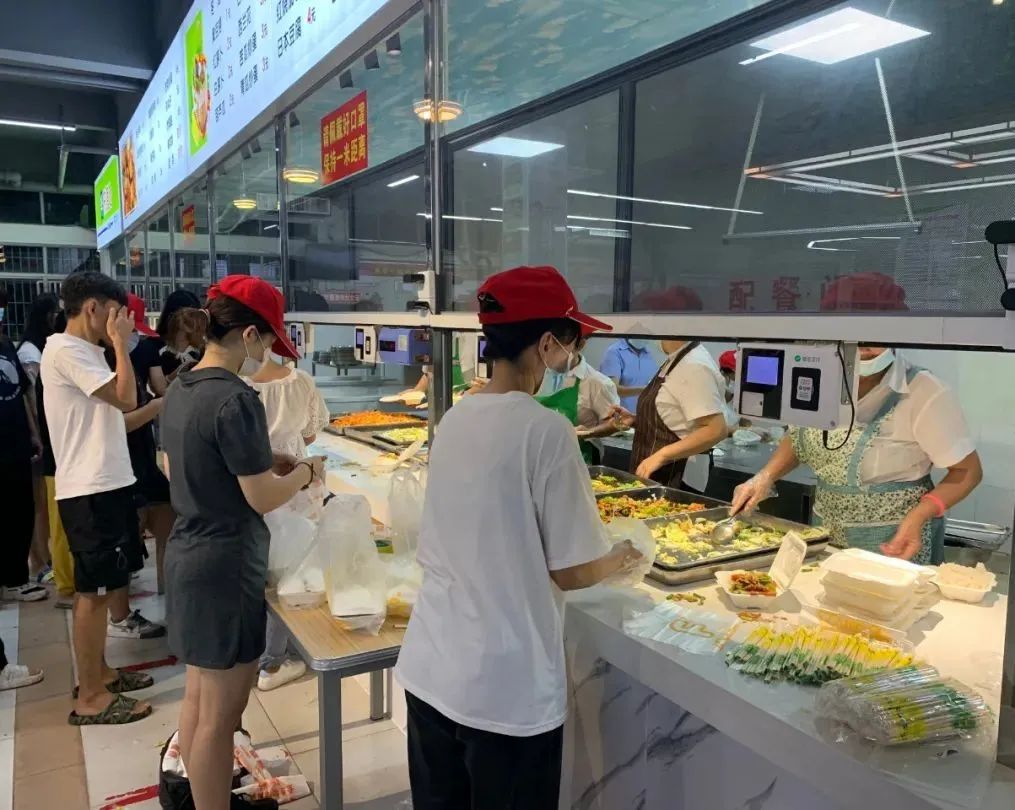 在学院的统一安排下,同学们纷纷来到食堂,井然有序地排队领取饭菜。