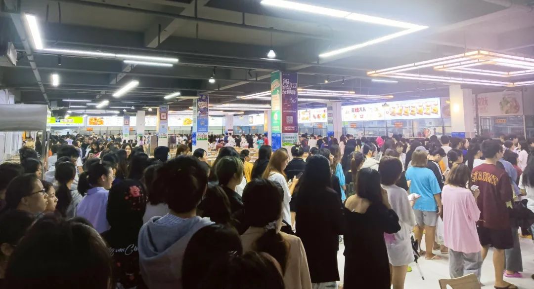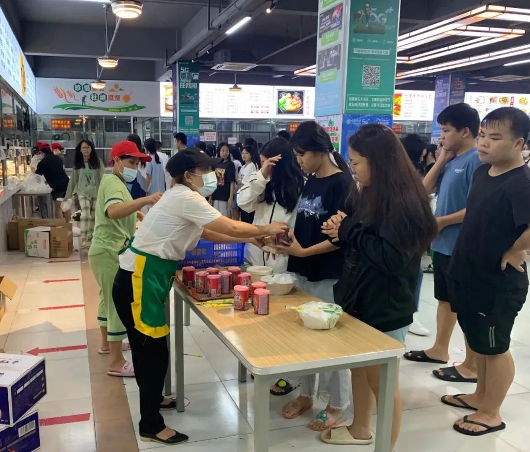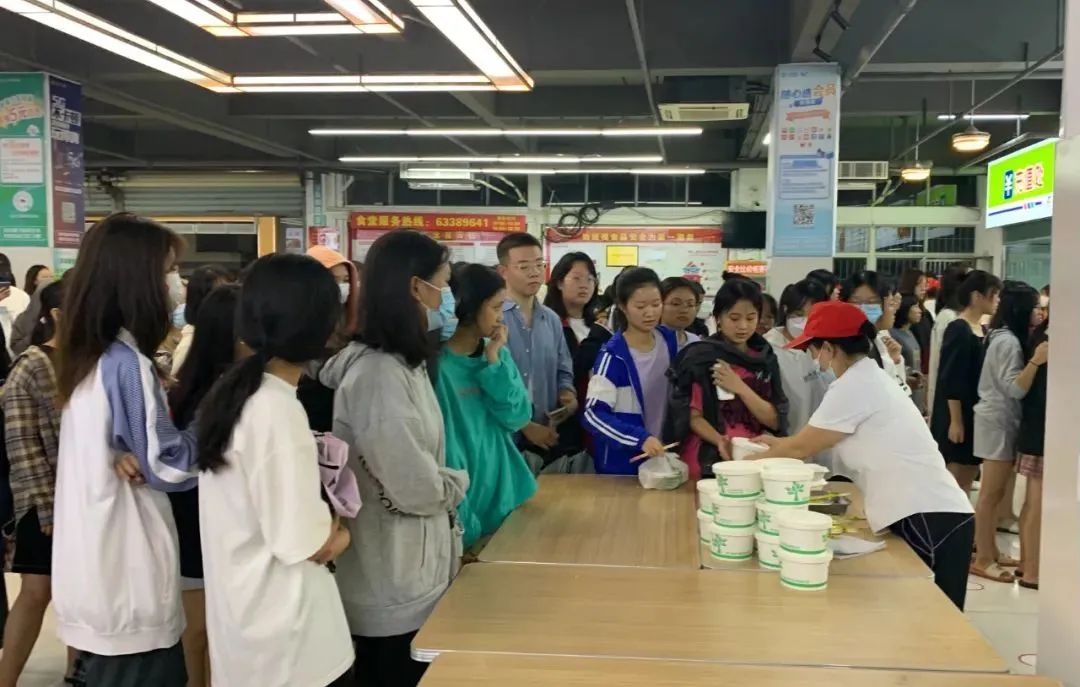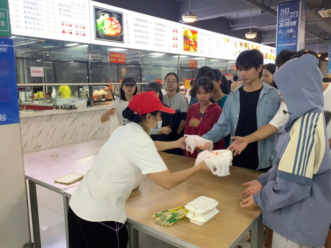 在学院的统一安排下,同学们纷纷来到食堂,井然有序地排队领取饭菜。