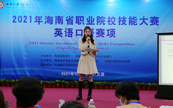 此次比赛由海南省教育厅、海南省人力资源和社会保障厅共同主办,海南省外语职业教育教学指导委员会、我院共同承办,外语教学与研究出版社为赞助单位,集结了省内各高职院校佼佼者同台竞技、角逐较量,代表了我省高职院校学生英语口语最高水平,是高职院校优秀英语教学成果的一次展示。我院两名同学在比赛中脱颖而出,展现了我院学生在英语口语表达上突出的能力,也展示了我院在英语教学领域的优势和实力。