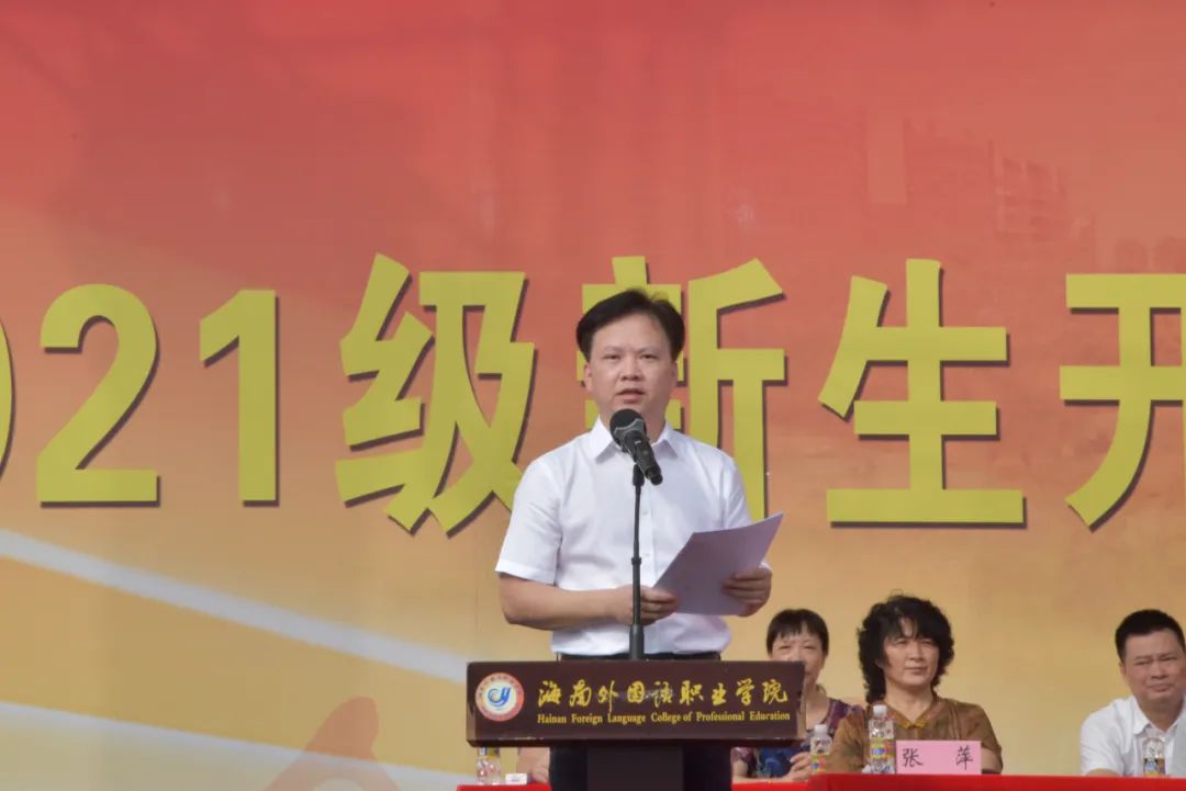 杨学前院长在致辞中向全体新同学表示衷心祝贺和热烈欢迎,他勉励同学们:要趁诗意年华,书青春华章。以“咬定青山不放松”和“积土而为山,积水而为海”的拼搏精神,坚定“天生我材必有用”的决心,在最宝贵的大学年华释放青春激情,书写无愧于时代的青春华章;要立鸿鹄之志,做有为青年。修身立德,志存高远,坚定理想信念,树立远大抱负,争做有为青年,在实现中华民族伟大复兴的新征程上奋力奏响“请党放心,强国有我”的时代强音;要借时代之力,扬青春之帆。勇于抓住时代机遇,坚决扛起历史担当,不负时代,不负韶华,扬鞭奋蹄,将个人发展融入到国家和民族发展的历史洪流中,让青春之花在海南自贸港建设的时代潮流中绚丽绽放。