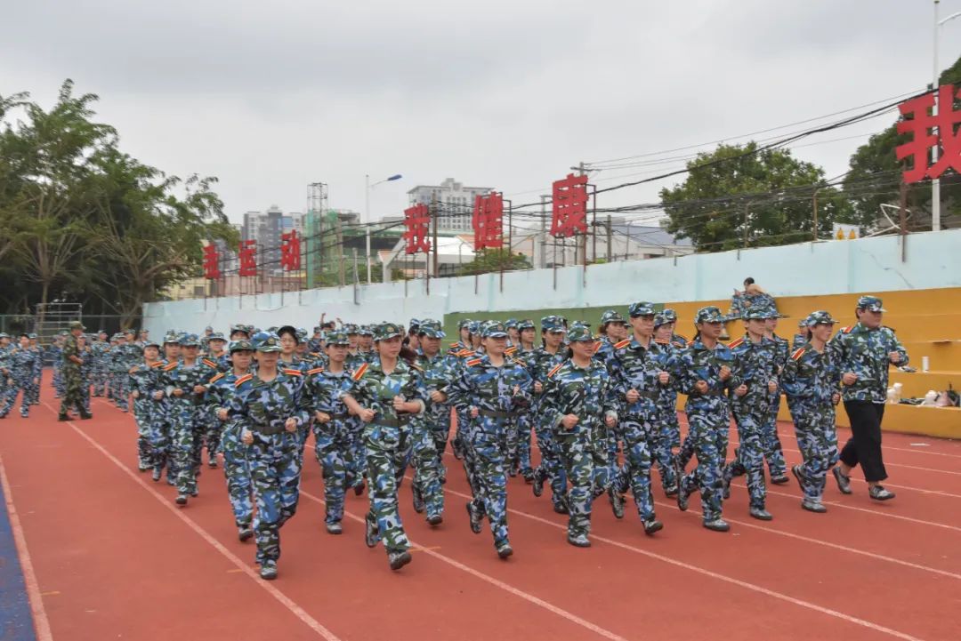 两周的磨练,汗水与激情一同迸发着,一声声口号响彻云霄,一个个脚印踏满操场,炯炯目光,透露着坚毅和成长。