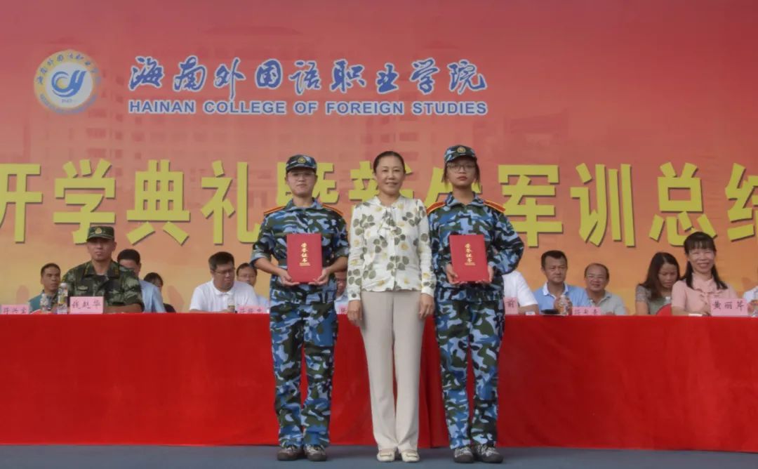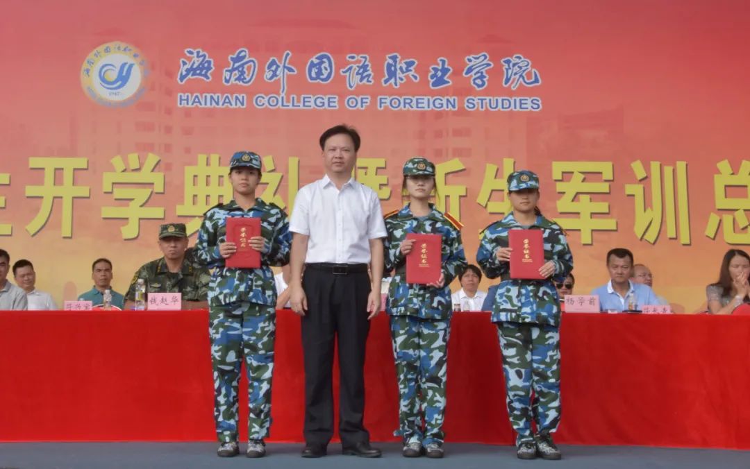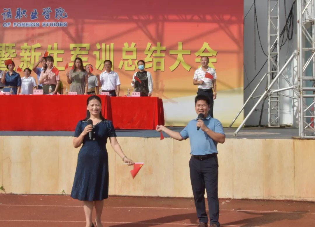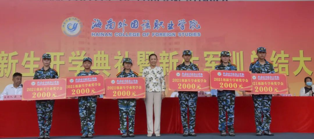 大会对我院2021级新生学业奖学金、东盟语言专业奖学金的获得者、优秀教官、军训优秀标兵、军训先进集体等进行表彰,参会领导为获奖个人和集体颁奖。