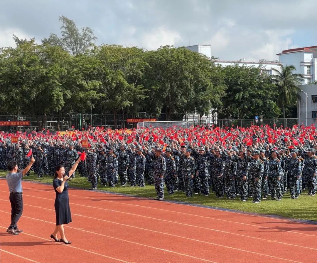 10月21日上午,我院2021级新生开学典礼暨军训总结表彰大会在田径运动场举行。学院党委书记佴建乔,党委副书记、院长杨学前,党委副书记黄丽芹,党委委员、副院长梁松,承训部队领导出席大会。各部门、各系部主要负责人,全体参训教官、两千多名2021级新生参加大会。大会由梁松副院长主持。大会在雄壮而庄严的国歌声中拉开帷幕。