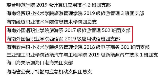 2020年度“海南省五四红旗团支部(团总支)”名单
