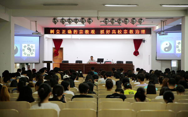 为进一步加强学院意识形态工作,引导师生树立正确的马克思主义宗教观,抓好高校宗教治理工作。 4月8日下午,我院特邀省委统战部宋星河处长到开云官网多功能报告厅做“树立正确的宗教观,抓好高校宗教治理”专题讲座。学院党委委员、副院长梁松、党委办公室(宣传统战部)负责人兼国际交流中心主任饶其康、党办、学生处、国际交流中心工作人员以及系部书记、全体辅导员、外事秘书、外教助理、学生干部参加讲座。讲座由党委办公室(宣传统战部)饶其康主任主持。