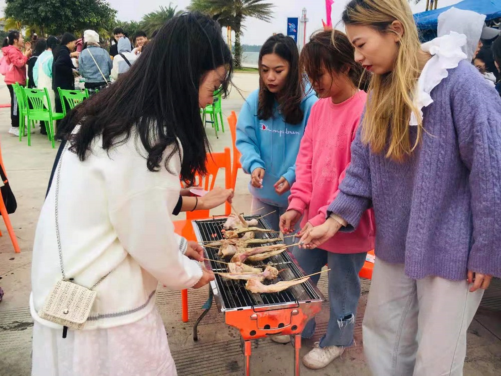 最令人期待的便是自助烧烤环节,工作组的伙伴们搬出早已洗干净的食材,将它们分配好后发放给每一个小组。大家虽然一开始手足无措,但在坚持团结协作,不抛弃不放弃的相互鼓舞下,积累了经验,明确分工,逐渐得心应手起来。最后,一串串美味诱人的美食摆放在餐桌上,大家在一片欢声笑语中结束了午餐。