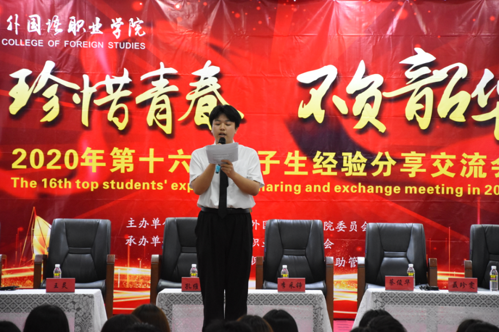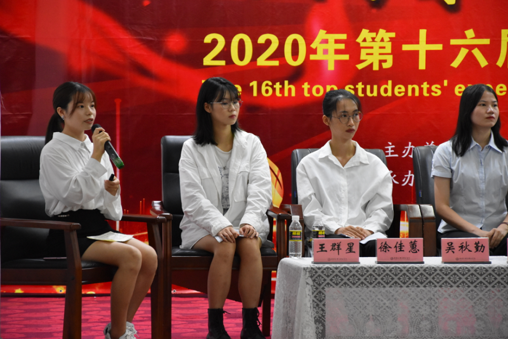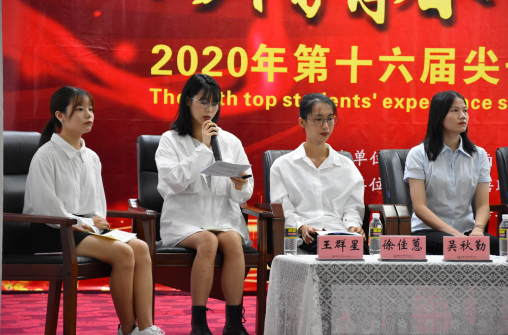 尖子生们,坐姿端正,面带微笑,从容不迫。他们是许多人的榜样,一句句流利的外语,背后饱含着辛勤的付出,激励着萌新们奋发图强。他们出类拔萃,令人赞叹不已,迎来在场的阵阵掌声;他们知无不言,毫无保留拿出自己的独家秘笈。尖子生这个称号,他们当之无愧。