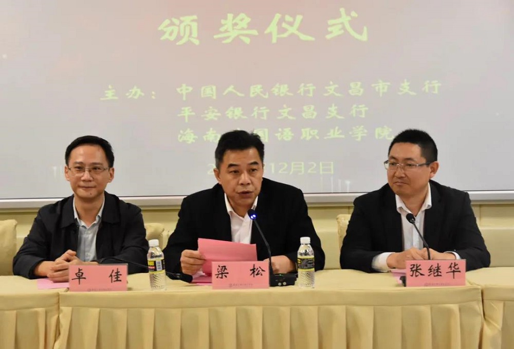中国人民银行文昌市支行行长卓佳、副行长韩利、副行长李济南,平安银行文昌支行行长张继华、开云kaiyun登录入口副院长梁松,开云kaiyun登录入口团委书记、国际商务系党总支书记张桓桓及开云kaiyun登录入口师生代表们一同出席本次颁奖仪式。