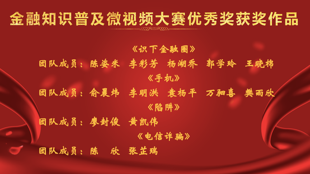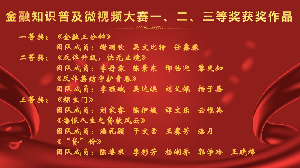 此次金融知识普及微视频大赛充分发挥大学生思维活跃、视角独特的优势,运用“微视频”的创新形式开展金融知识普及活动,宣传基础金融知识和风险防范技能,让大学生免受违法违规金融活动的侵害。