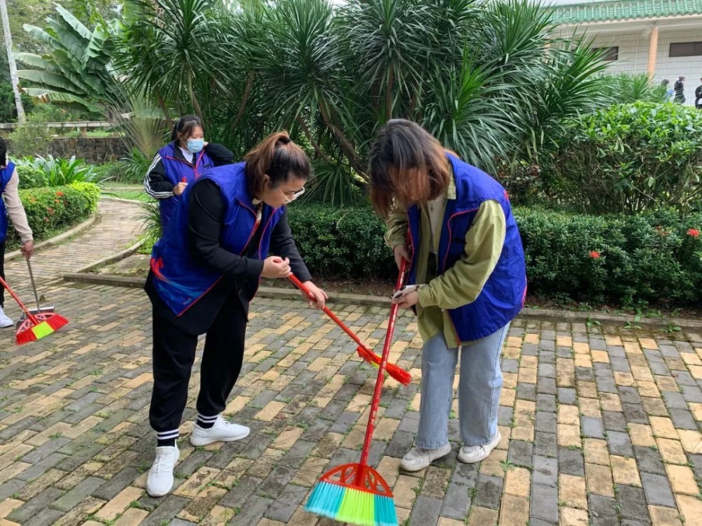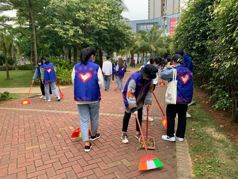 与此同时,各系部志愿者一同前往市教育公园。志愿者们不畏萧瑟的风,有条不紊地清扫公园内的树叶和垃圾,用自己的行动为文昌献出自己的一份力量。
