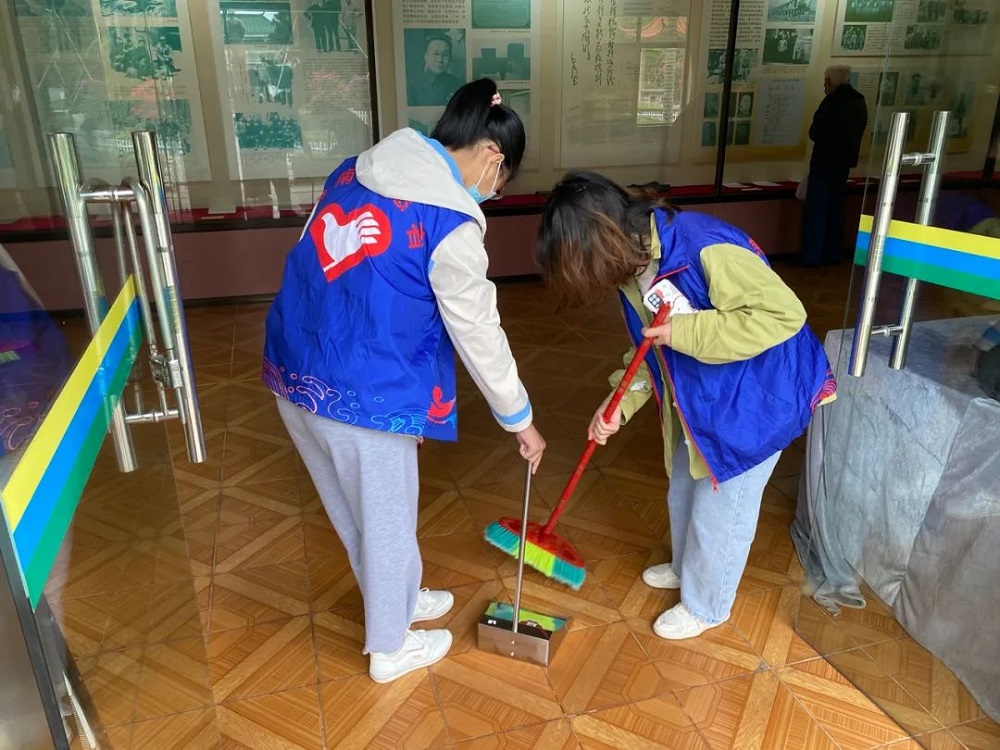 打扫纪念园,缅怀革命先辈