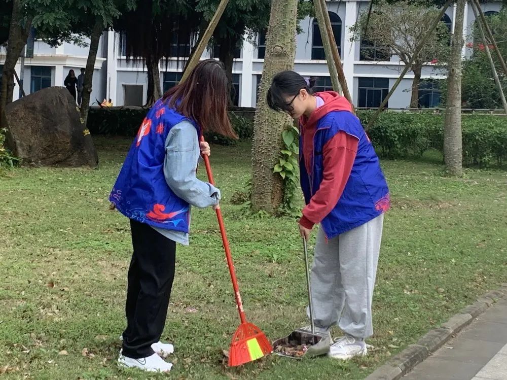 虽然空气中弥漫着丝丝寒意,但志愿者们的热情没有褪减,始终干劲十足。大家拿着手中的扫帚,对校园各个角落进行全面的清理。时至正午,在大家的共同努力下,海外院焕然一新。