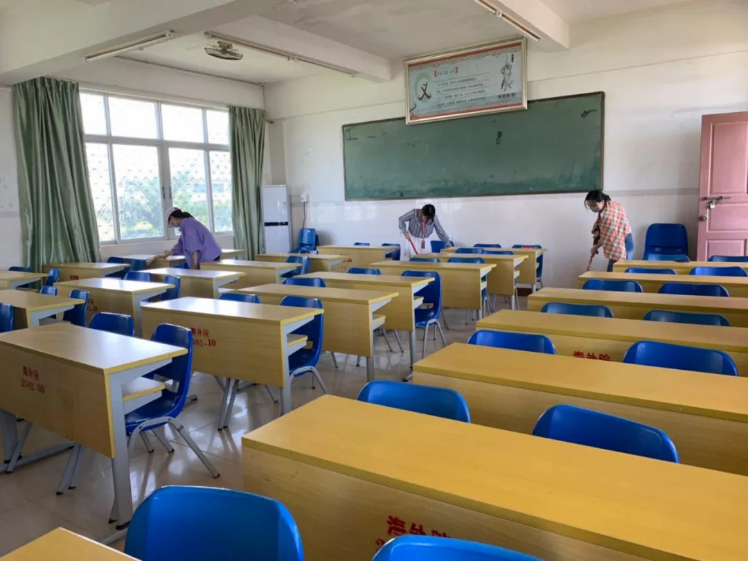 海南炎炎夏日,面对这么严峻的工作,各位老师们和后勤人员们一丝不苟的做好开学准备工作。团团在这这里替同学们说声:您们辛苦了,谢谢您们!