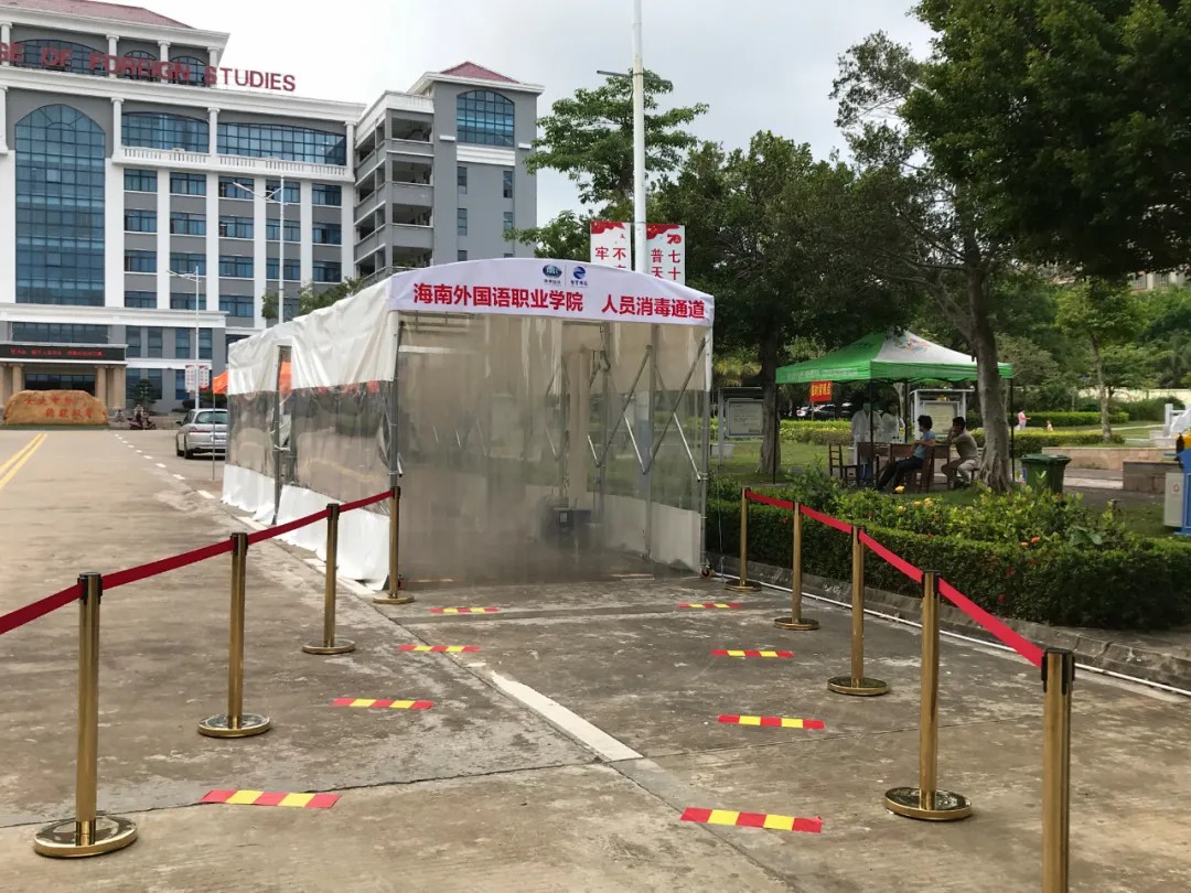 除此之外,学院在北门、东门均设置并启用了自动测温门和消毒通道。