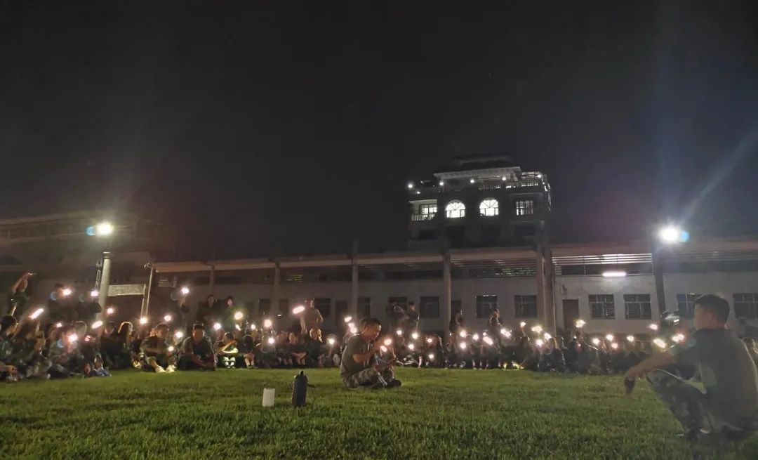 结束了一天的训练,那就和晚会相约吧。有你的笑,整个海外院都暖了。有你相伴的军训,很甜很甜~